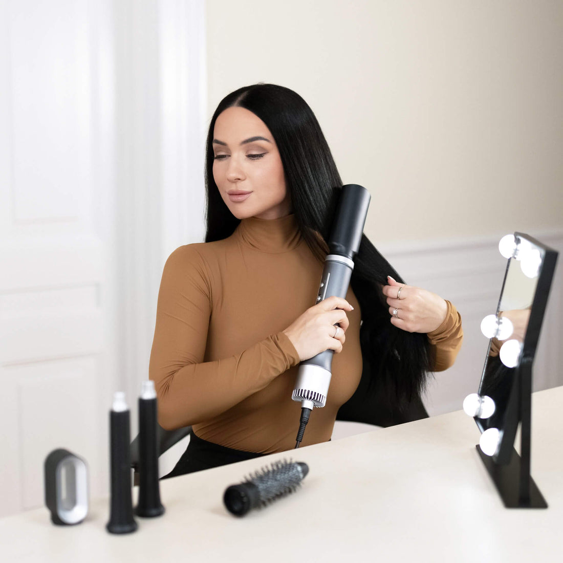 Ja! Airstyleren er designet med skånsom varme og luftgennemstrømning, som minimerer skader på håret sammenlignet med traditionelle varmeværktøjer. Den bruger ionisk teknologi, som modvirker krus og efterlader håret glansfuldt og sundt at se på.